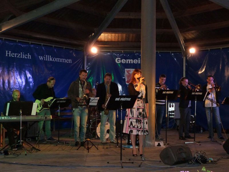 Mit Michael Kolar stand sogar der erste Trompeter der Pilsener Philharmoniker auf der Seepark-Bühne. Die acht Vollblutmusiker legten sich für die Veranstaltung mächtig ins Zeug, es dominierte der Bläsersatz. Die aufwendigen Arrangements spielten sie dabei mit einer unglaublichen Präzision und Power. Die Profimusiker trafen immer den richtigen Ton und glänzten vor allem durch einen exakten Einsatz der Bläser. Und dabei proben sie so gut wie nie zusammen für ihre Auftritte, außer bei ihren beruflichen Kontakten in Oper und Theater. Aus einem Spaß heraus entstand auch ihr Band-Name: „OKiii“ war der launige Ausruf des Schlagzeugers Ivan zur positiven Bekräftigung so mancher Frage. Und schon war der Bandname geboren. Bei Jazzpianist Michel Camilos „One more once“ war Gelegenheit, dass sich die einzelnen Instrumente mit einem Solo vorstellten. Gut gelaunt auch Schlagzeuger Ivan Andes, der mit humorvollen Überleitungen durchs Programm führte. Sein Gruß galt besonders dem Lamer Rudi Graßl, auf dessen Vermittlung der Auftritt in Arrach zustande kam. Selbst begeisterter Musiker saß er mit seiner ganzen Familie im Publikum und genoss mitwippend die Darbietungen seiner Kollegen auf der Bühne. Die Jazzstandarts “Satin Doll”, eine Melodie von Duke Ellington, oder „Blue Bossa“ aus der Feder von Kenny Dorham gehörten ebenso zu ihrer Auswahl wie die berühmte Hommage von Steve Wonder an Duke Ellington „Sir Duke“. Im Big-Band-Sound gaben die Top-Solisten damit eine weitere Kostprobe der virtuosen Beherrschung ihrer Instrumente. Das weibliche Element brachte die charmante aus Prag stammende Sängerin Katerina Schildova herein. Das dezent gesungenen Bossa-Nova-Stück „The girl from Ipanema”, leidenschaftlich und mit großer Hingabe dargebracht, ließ aufhorchen. Ihre Wandlungsfähigkeit vom Schmusetiger ( „It’s only a paper moon“ von Ella Fitzgerald) zur Rockröhre („Simply the best“ von Tina Turner oder „Time of my live“ aus dem Soundtrack zum Film „Dirty dancing“) war bezeichnend. Ins Genre der Pop-Musik führte ein weiterer Musikblock mit Hits wie „Saving all my love for you von Whitney Houston oder „Sex bomb“ vom Tom Jones. Dem in der nächtlichen Kühle ausharrenden Publikum gefiel es und der Applaus ließ auch nicht lange auf sich warten. Die nächste Veranstaltung im Rahmen des Bunten Sommers findet am Donnerstag, 17. Juli um 20 Uhr statt, wenn die Cover-Band „The stars“ den Erfolg der Rolling Stones glaubwürdig nachzeichnet. Der Eintritt ist wie immer frei. Für die Bewirtung sorgt das Seepark-Team.