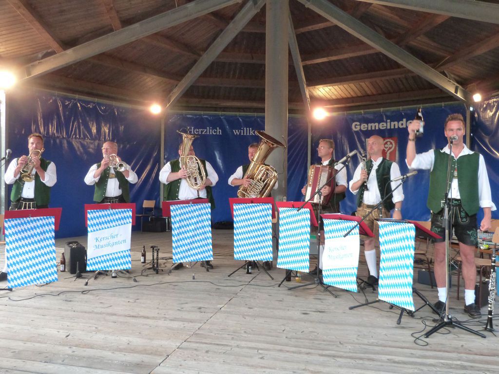 Die vierte erfolgreiche Veranstaltung des „Bunten Sommers 2014“ (eine weitere musste wegen Regens erfallen) geht in die Annalen der Veranstaltungsreihe ein, denn nach morgendlichem Regen hatte der Wettergott dennoch ein Einsehen mit dem Veranstalter und bescherte feuchtwarmes Sommerwetter für den Abend. Die musikalischen Klänge der exzellent aufspielenden „Kerscher-Musikanten“ lockten viele Seepark-begeisterte Zuschauer aus nah und fern herbei. Sehr zur Freude von AK-Seepark-Vorsitzendem Hermann Zapf, der bei seiner Begrüßung auf vollständig gefüllte Tische und viele „Zaungäste mit Stehplätzen“ blicken konnte. Mit der Polka „Lustig und fidel“ beschrieben die sieben eingefleischten Musiker aus Wiesent, von denen vier „Kerscher“ heißen, das Motto des Abends. In ihrem breitgefächerten Repertoire hatten sie auch bekannte Stücke wie die „Amtsgerichts-Polka“ und den „Amtsgerichts-Landler“, den „Alpbach-Marsch“ oder den „Margareten-Rheinländer“ auf Lager.