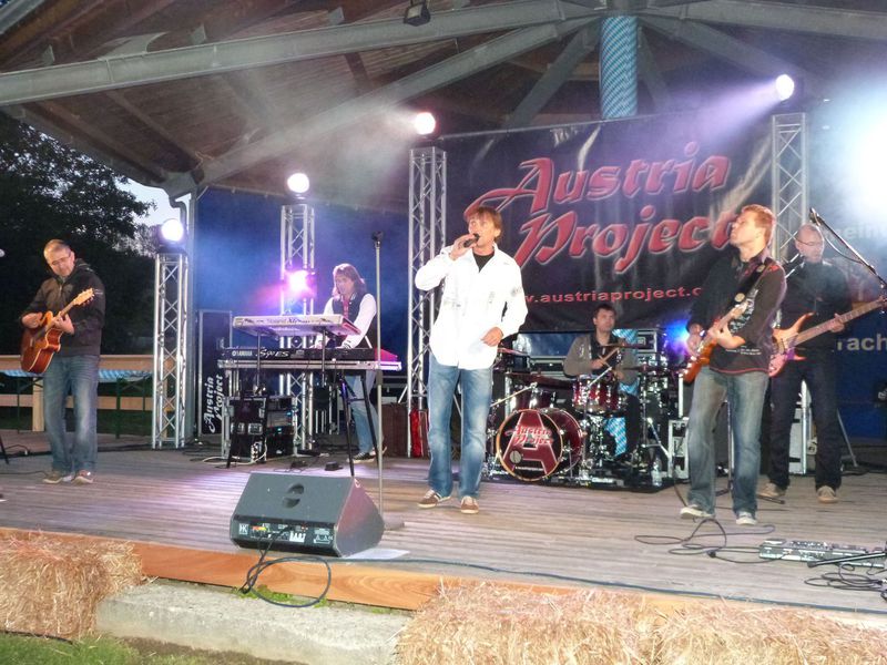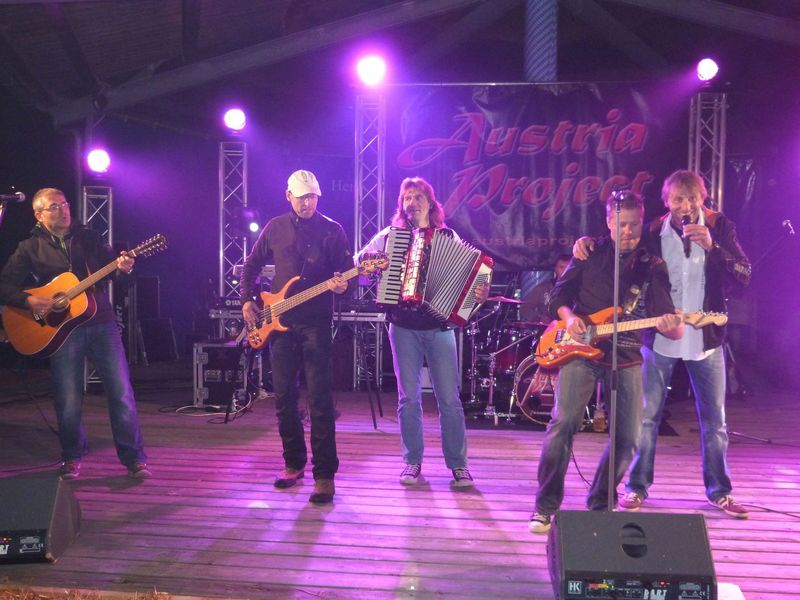 Berge, Skifahren, Mozart und natürlich die Liebe – das alles waren Themen der Songauswahl im Programm der Coverband. Der zwischen Tirol und Wien beheimatete Austria-Pop wurde nicht nur durch seine bekanntesten Vertreter Wolfgang Ambros, Georg Danzer, Rainhard Fendrich, Peter Cornelius, STS, Falco, Die Seer oder Hubert von Goisern bekannt, sondern auch „Austria Project“ brachten musikalisch auf höchstem Niveau die Highlights mit eigenen Erinnerungen und viel Schmäh dar. Dabei bestachen sie durch ihre hohe Authenzität, wobei auch eigene Einflüsse in der Interpretation eingebracht wurden. Einen großen Anteil daran hatte Sänger Dallabrida, der nicht nur durch seine stimmliche Qualität auffiel, die sich hautnah am Original orientierte, sondern der es auch verstand, sein Publikum durch launige Kommentare zu überzeugen. Titel wie „Es lebe der Sport“ (Fendrich), „Laß mi amoi no di Sunn aufgeh sehn“ (Danzer), „Gö, du bleibst heit Nacht bei mir“ oder „Zwickts me“ (Ambros) vereinten ausdrucksstarken Lead- und perfekten Satzgesang. Die Eigeninterpretation der Lieder mit einer unnachahmlichen Eigennote verschmolzen die Songs mit dem Original und ließen sie manches Mal sogar noch besser und frischer erscheinen.
