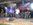 Mannen für die Errichtung der neuen Tanzbühne, die sich nahtlos an den Veranstaltungspavillon anschließt.