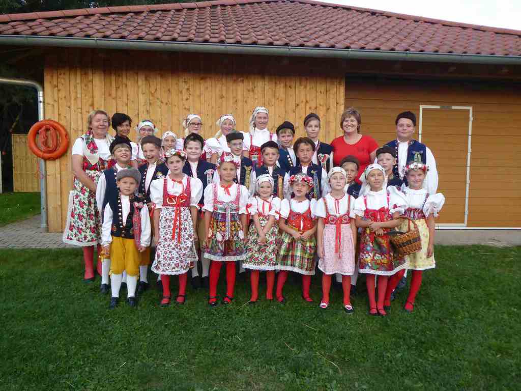 Kinder-Tanz Gruppe aus Chodenland "Dětský chodský soubor Mrákováček", Tracht- und Musikgruppe mit 25 Mitgliedern aus dem Chodenland "Chodský soubor Mrákov" mit Dudelsack-Musik, der Kindertanzgruppe