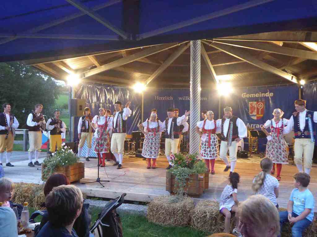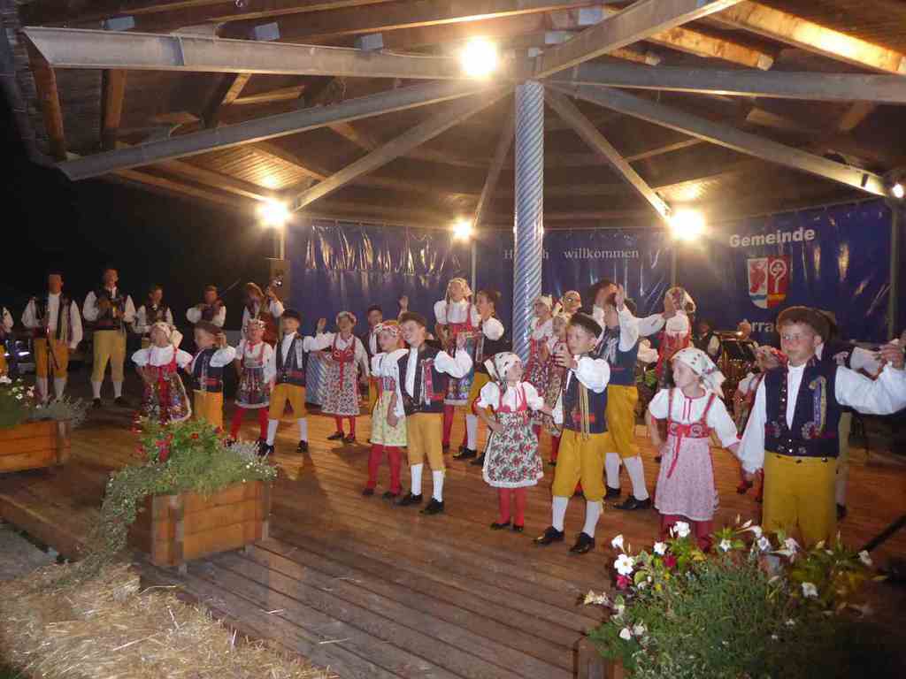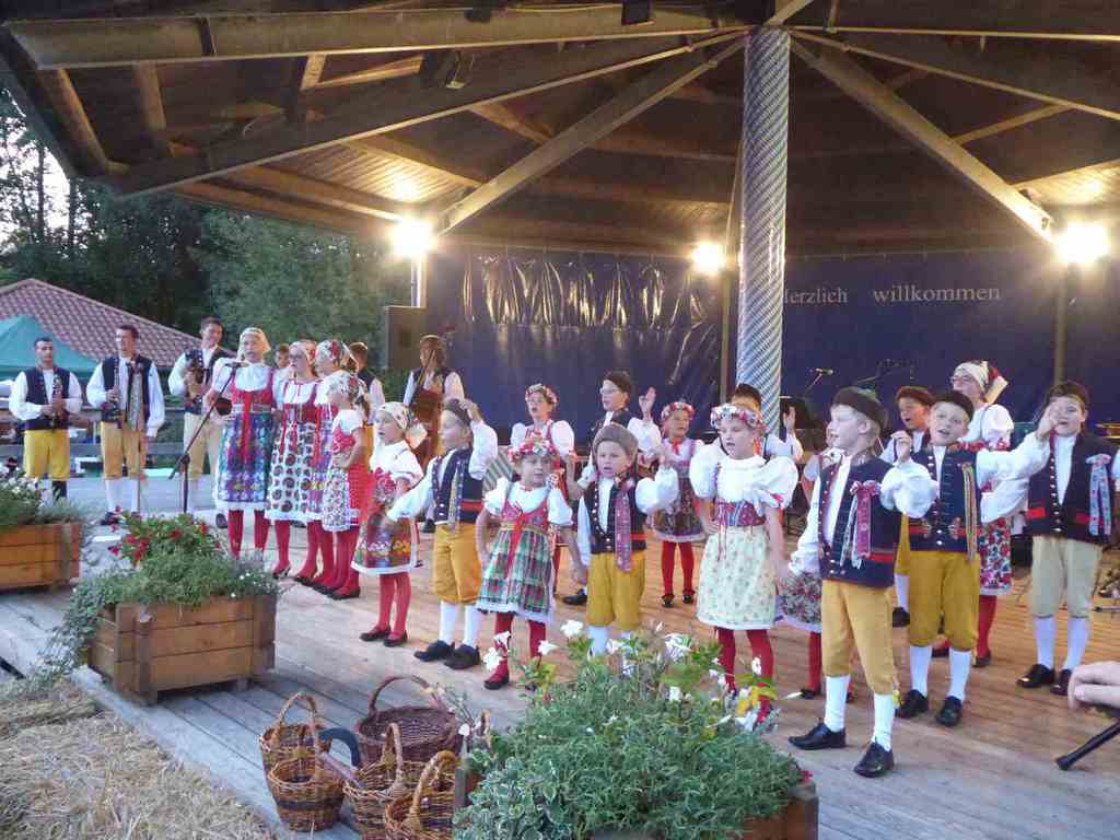 Keine Unbekannten mehr waren die „Louburga Schuhplattler“, sechs junge Burschen, die unter der musikalischen Begleitung von Martin Dachs und Alois Schneck die Plattler „Penzberger“ und „Wendlstoana“ auf Parkett brachten. Eine Augenweide war die Kindertanzgruppe der Trachtenvereine D’Riedlstoana Arrach und Stoarieda Ottenzell unter der Leitung von Gunda Weber und Andrea Hofmann. Sie zeigten die Ennstaler- und Sternpolka und sangen sich mit „Frau Nachbarin“ in das Herz des Publikums. Die Bewirtung mit böhmischen Spezialitäten übernahm wiederum die Arracher Partnerfeuerwehr aus Janovice mit Kommandant Marian Jirik und Vorsitzenden Tomas Jirik. Alsbald vergriffen waren die frisch geräucherte Wurst, Hot Dog, Kartoffelpuffer und die beliebten Golatschen. Der Getränkeverkauf lag in den Händen des AK Seepark und seiner Helfer, die neben anderen kühlen Getränken auch das süffige tschechische Bier „Holba“ anboten.