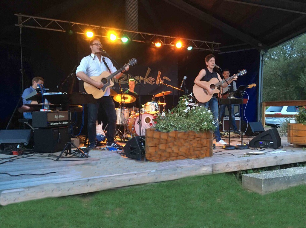 Auf der CD „Oamoi lem“, die an diesem Abend vorgestellt wurde, finden sich gefühlvolle und rockige Balladen mit ausschließlich bayerischen Texten aus dem echten Leben gegriffen genauso wie rockige, funkige, sentimentale und lustige Songs. „I bin gspannt af di“ widmete er seinem (damals noch ungeborenen) Sohn Max. Bayerische Zungenschlagfertigkeit, die auch beim Jodeln hilfreich ist, war nötig bei „De dürra Diandl dadade dadrucka“, ein Lied, das sich gegen den Schlankheitswahn bei Models richtete. „Umdrahn“ bezog sich auf das Verstecken eines Schokoladenflecks auf dem heimischen Sofa und mit „Maria“ meinte er eine Verflossene, die eigentlich Julia hieß (nur um diese nicht in ihrem Eheglück zu kompromittieren). Auch zu den weiteren Titeln wie „Sau hoass“, „Frei und zamm“, „Zuig die Stiefel aus“, „Reiss di zamm“, „Auf da Ossawies“ oder „Wurzeln und Flügel“ verriet Adam stets die Entstehungsgeschichte. Einen großen Anteil am Erfolg der Gruppe hatte Sängerin und Frontfrau Anja Drexler, eine waschechte Arracherin. Mit ihrer beeindruckenden Stimme, extrem wandelbar von einfühlsam und berührend bis rockig und verraucht gab sie jedem Lied den richtigen Touch. Jahrelange Bühnenerfahrung war auch bei Thomas Jobst (Baß/Gesang), Anton Schießl (Tasten/Gesang) und Peter Asanger (Schlagzeug) zu erkennen. Die fünf Profimusiker bildeten eine stimmige Einheit und begeisterten ihr Publikum nachhaltig. Das facettenreiche, rund dreistündige Programm reichte von aktuellen Charthits über Rock- und Popklassiker bis zu altbekannten Schlagern und Hits aus dem 50´s und 60´s. Mit den letzten Tönen der lautstark geforderten Zugabe „Großvater“ nahm die Veranstaltungsreihe für dieses Jahr ihr Ende. Durchaus zufrieden mit dem „Bunten Sommer 2017“ zeigte sich auch AK-Seepark-Vorsitzender Hermann Zapf. Einziger Wermutstropfen sind die zwei wegen Schlechtwetter ausgefallenen Veranstaltungen („PowerFool“ und „Boarische Gaudinacht“). „Das hat uns schon wehgetan“, meint er nachdenklich. Liebäugelt man doch mit der Anschaffung einer Zeltüberdachung für die Zuschauer. Dennoch ist er schon wieder voll in der Planung mit Ideen für die nächste Saison. Gilt es doch, immer wieder neue Ideen zu bringen.